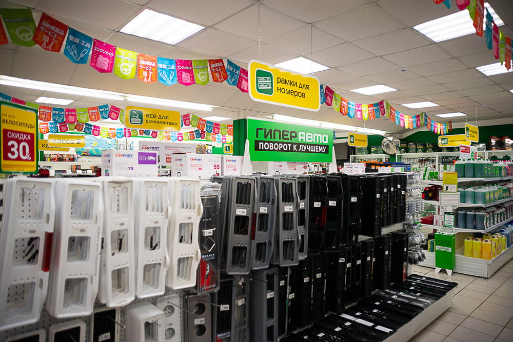 Все магазины Гиперавто оформлены в современном стиле с открытой выкладкой товаров.