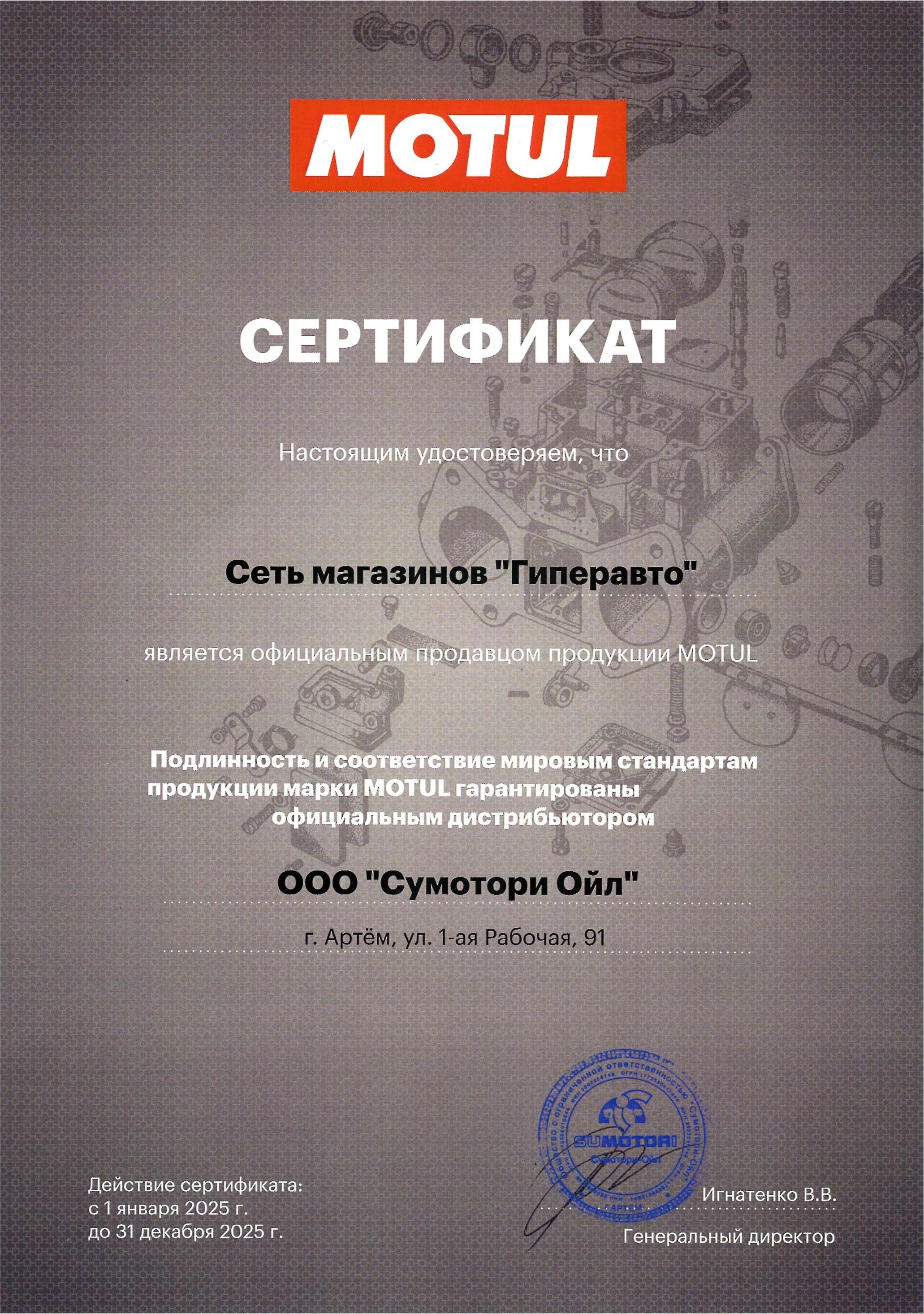 Французская компания Motul (Мотюль) известна, в первую очередь, как производитель моторных масел и смазок самого высокого качества. Motul является старейшим в мире производителем смазочных материалов — компания основана в 1853 году. Сегодня Motul — это традиции безупречного качества и постоянных инноваций, которые накоплены за долгую историю бренда. Масла Motul неразрывно связаны с миром большого авто- и мотоспорта. Такое техническое партнёрство — не только престиж и сотни побед в гонках, но и лучший способ проверки эксплуатационных качеств смазочных материалов.