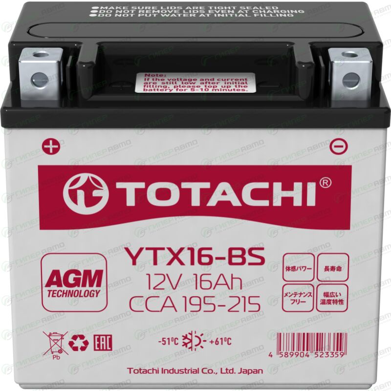 Аккумуляторные батареи TOTACHI® AGM выполнены с применением передовой технологии AGM (Absorbent Glass Mat). Токоотводные пластины используемых электродов изготавливаются по технологии Ca/Ca из высокоочищенного свинца, легированного кальцием. В батареях TOTACHI® AGM жидкий электролит абсорбирован в матах (сепараторах) из микростекловолокна, плотно спрессованных между электродными пластинами. Это обеспечивает надежное поступление электролита по всей площади токоотводов. Взаимодействие между электролитом и материалом пластин обеспечивается практически в любом положении АКБ, а внутреннее сопротивление сведено к минимуму.