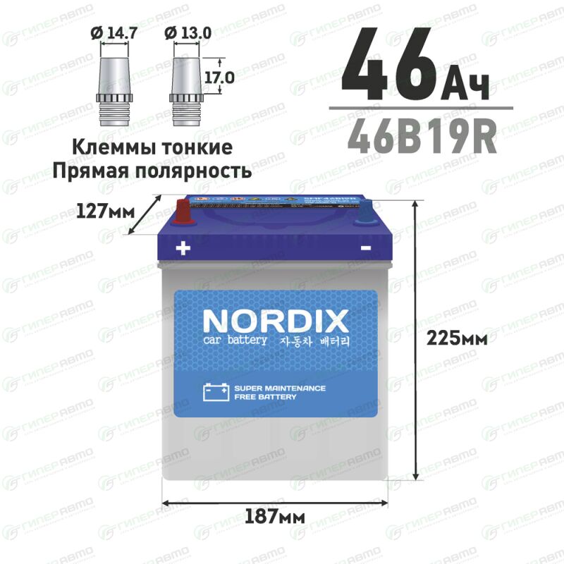 Вы можете купить аккумулятор nordix 46b19r, 46ач, cca 370а, необслуживаемый (китай) в интернет-магазине автомобильных аккумуляторов Гиперавто. Цена на NORDIX SMF46B19R.NDX Китай, описание, характеристики и фотографии.