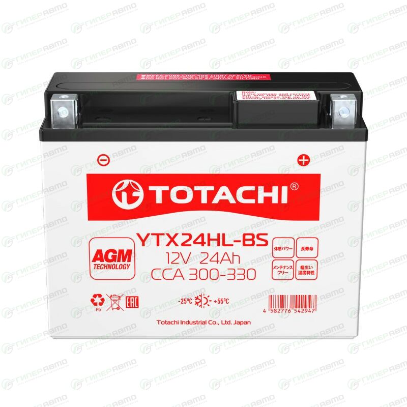 Вы можете купить аккумуляторная батарея totachi moto ytx24hl-bs 24 а/ч l agm в интернет-магазине аккумуляторов для мотоциклов и скутеров Гиперавто. Цена на TOTACHI 92124, описание, характеристики и фотографии.