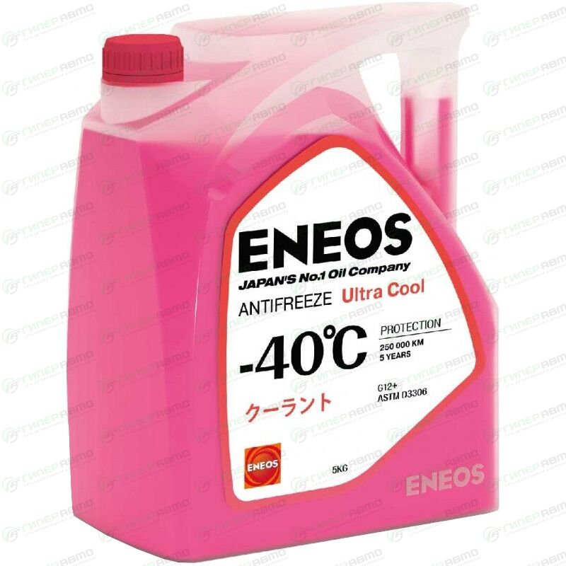 Жидкость охлаждающая низкозамерзающая ENEOS Antifreeze Ultra Cool приготовлена на основе высококачественного моноэтиленгликоля. Содержит современные ингибиторы коррозии на основе органических карбоновых кислот (OAT — Organic Acid Technology). Не содержит метанола, глицерина, силикатов, аминов, нитритов, боратов и фосфатов. Применяется в двигателях, изготовленных из чугуна, алюминия или комбинации этих металлов, а также в системах охлаждения, состоящих из алюминиевых и медных сплавов. Для регионов с умеренным климатом рекомендована марка ENEOS Antifreeze Ultra Cool -40 °C, для северных регионов с очень холодным климатом — марка ENEOS Antifreeze Ultra Cool -50 °C. Поддерживает увеличенный срок эксплуатации 5 лет (или 250 000 км пробега в легковых автомобилях). Соответствует требованиям к антифризам G12+ по классификации VAG (Volkswagen/Audi Group). Рекомендуется для современных двигателей, когда требуется улучшенная защита алюминия от высокотемпературной коррозии.