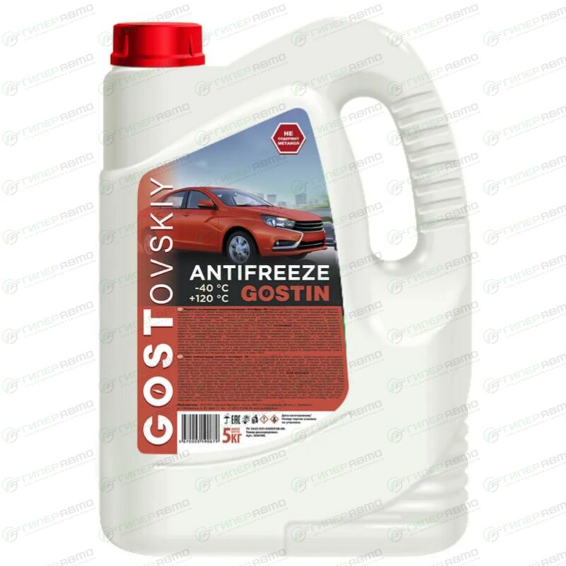 Антифриз GOSTovsky Antifreeze Gostin, красный, -40°C, 5кг, арт. 808789. Купить по доступной цене в интернет-магазине Гиперавто. (76741)