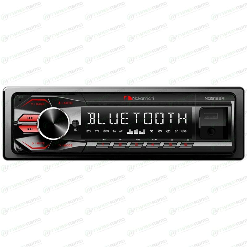 Nakamichi NQ512BR (красная подсветка) – USB/Bluetooth/FM цифровой медиа-ресивер формфактора 1DIN. Крупный, прекрасно читаемый дисплей. Максимальная мощность встроенного усилителя 4х50 Вт. На борту Bluetooth версии 5.1 с поддержкой профилей A2DP, HPP, HSP — это означает, что аппарат способен принимать аудиофайлы с смартфона и поддерживает режим Hands Free с внешним микрофоном (опция) для безопасного вождения. Более того, осуществлена возможность управления медиа-ресивером с помощью приложения для Android и iOS. Фронтальный порт USB принимает флэш-накопители до 64 ГБ и обеспечивает зарядку мобильных гаджетов 5В/1А. Поддержка аудиофайлов форматов: MP3, WAV, FLAC, WMA. NQ512B имеет 2 пары линейных выходов для подключения внешних усилителей. За коррекцию частотной характеристики отвечает 32 полосный эквалайзер. Помимо управления из приложения, аппарат имеет возможность работы с помощью пульта ДУ (в комплекте).