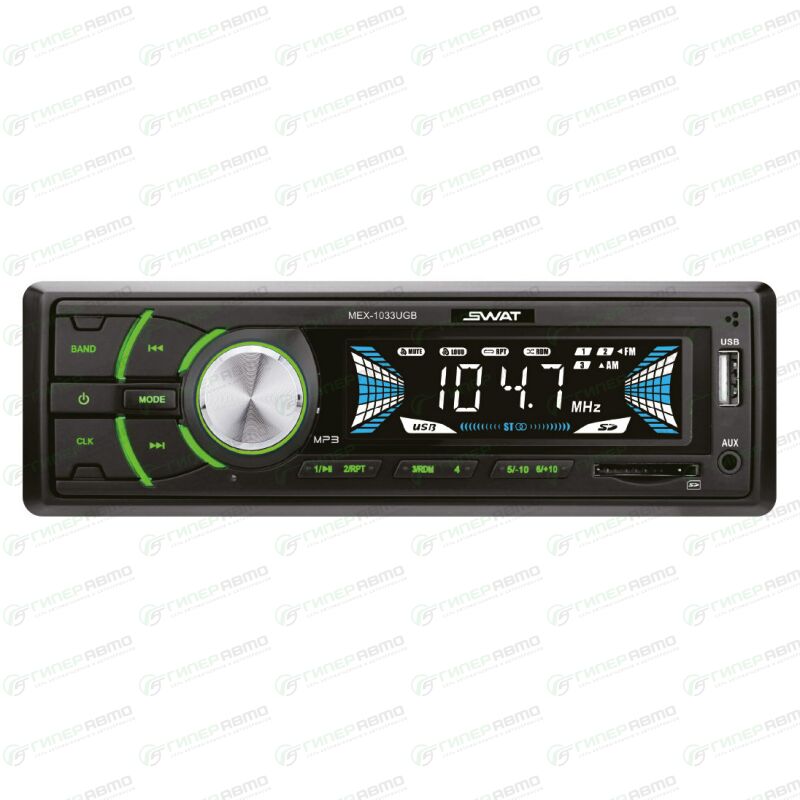 Для прослушивания громкой и чистой музыки используйте автомагнитолу SWAT MEX-1033UBG. Она станет неотъемлемой частью любой машины и особенно пригодится для дальних поездок. Универсальный черный цвет отлично впишется в любой салон, а зеленая подсветка позволит вам использовать устройство в темное время суток.