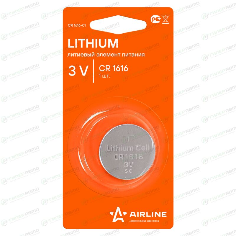 Вы можете купить батарейка литиевая airline, cr1616 (ø16.0x1.6мм), 3в, 1 шт, арт. cr1616-01 в интернет-магазине батареек Гиперавто. Цена на AIRLINE CR1616-01, описание, характеристики и фотографии.
