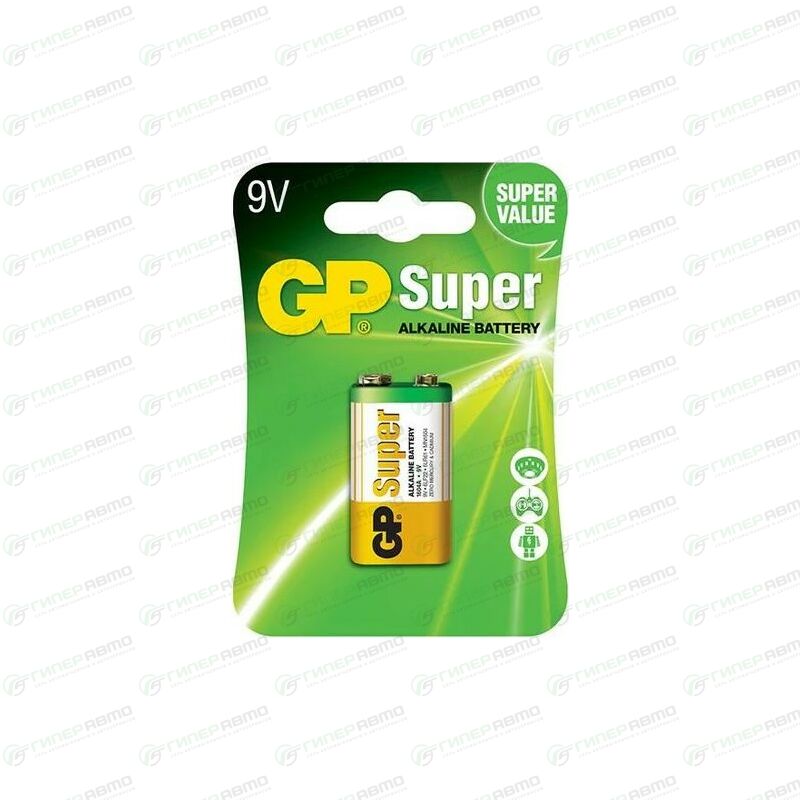 Батарейка щелочная GP Batteries Super, «Крона» (6LR61), 9В, 1 шт, арт. GP1604A-5CR1. Купить по доступной цене в интернет-магазине Гиперавто. (KF431)