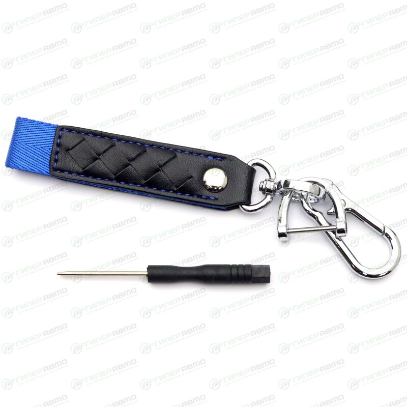Вы можете купить брелок на ключи карабин с кожаным ремешком и синей ткан вставкой (с отверткой в комплекте) в интернет-магазине брелоков Гиперавто по доступной цене.