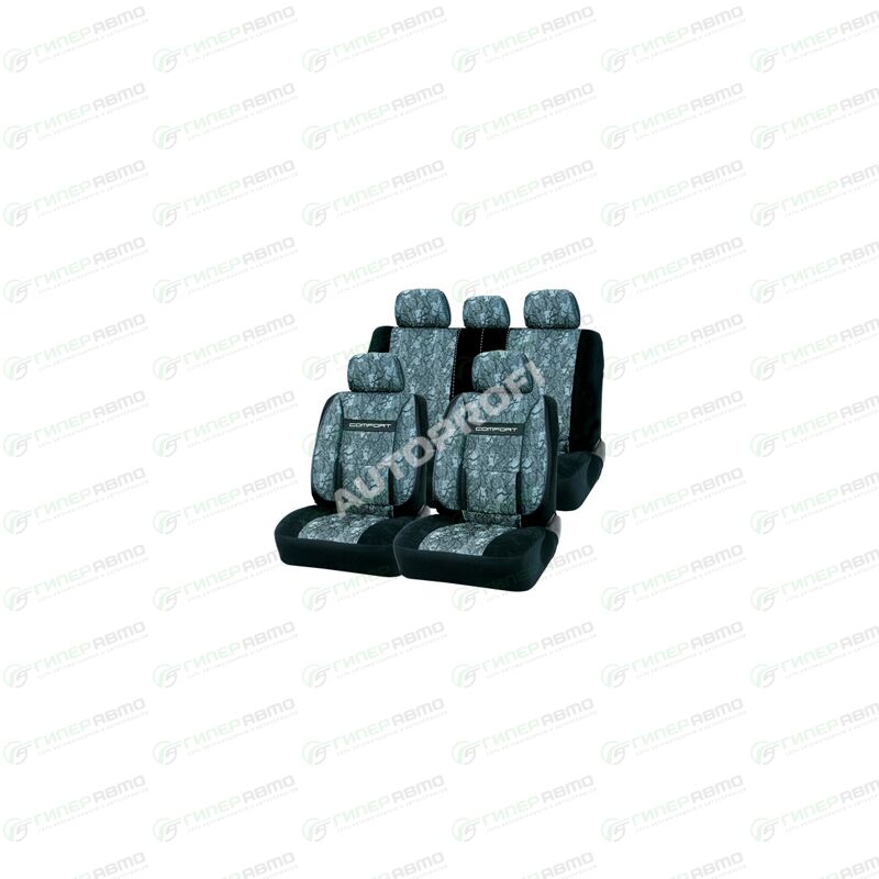 Автомобильные чехлы Comfort CYCLONE от компании Autoprofi, с боковой и ортопедической поддержкой спины, жакард (очень плотная и прочная ткань). Цвет черный/серый.