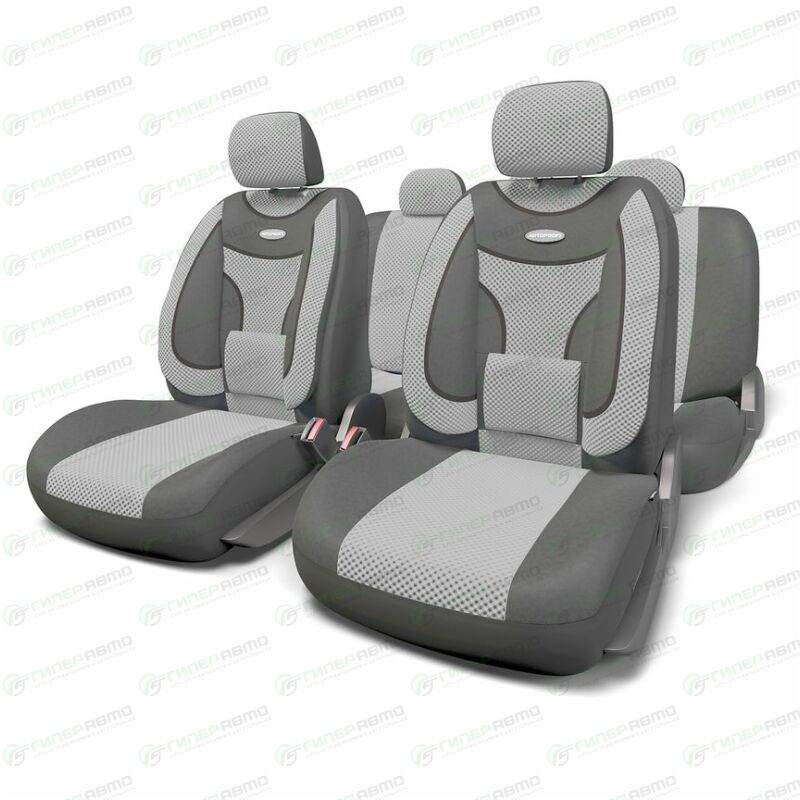 Универсальные автомобильные чехлы повышенной комфортности Extra Comfort от компании Autoprofi, с ортопедической поддержкой спины. Цвет темно-серый/светло-серый.