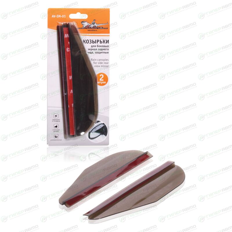 Предназначены для защиты зеркальных элементов боковых зеркала от попадания на них атмосферных осадков. Козырьки сделаны из затемненного эластичного пластика и легко монтируются при помощи двустороннего скотча.