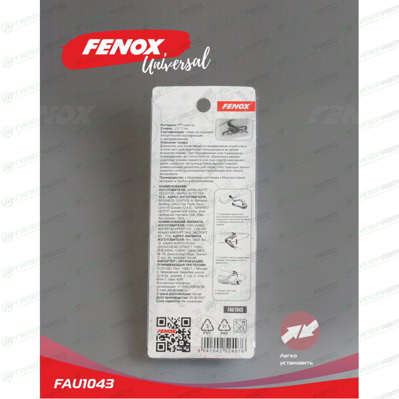 Вы можете купить держатель для очков fenox, на солнцезащитный козырек, чёрный, арт. fau1043 в интернет-магазине автомобильных держателей и подстаканников Гиперавто. Цена на Fenox FAU1043, описание, характеристики и фотографии.