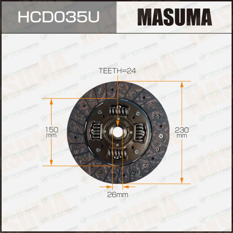 MASUMA HCD035U. Купить диск сцепления masuma (230х150х26х24.0мм), арт. hcd035u по выгодной цене в интернет-магазине запчастей Гиперавто. (56411)