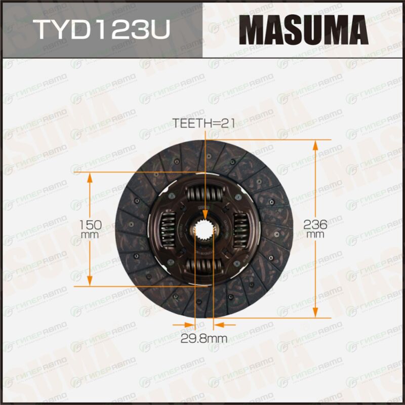 MASUMA TYD123U. Купить диск сцепления masuma (236х150х21х29.8мм), арт. tyd123u по выгодной цене в интернет-магазине запчастей Гиперавто. (40197)