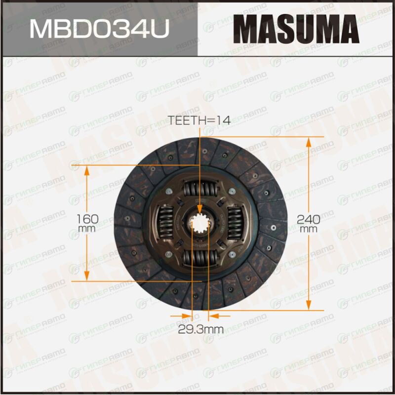 Вы можете купить диск сцепления masuma (240х160х14х29.3мм), арт. mbd034u в интернет-магазине деталей сцепления Гиперавто. Цена на MASUMA MBD034U, описание, характеристики и фотографии.
