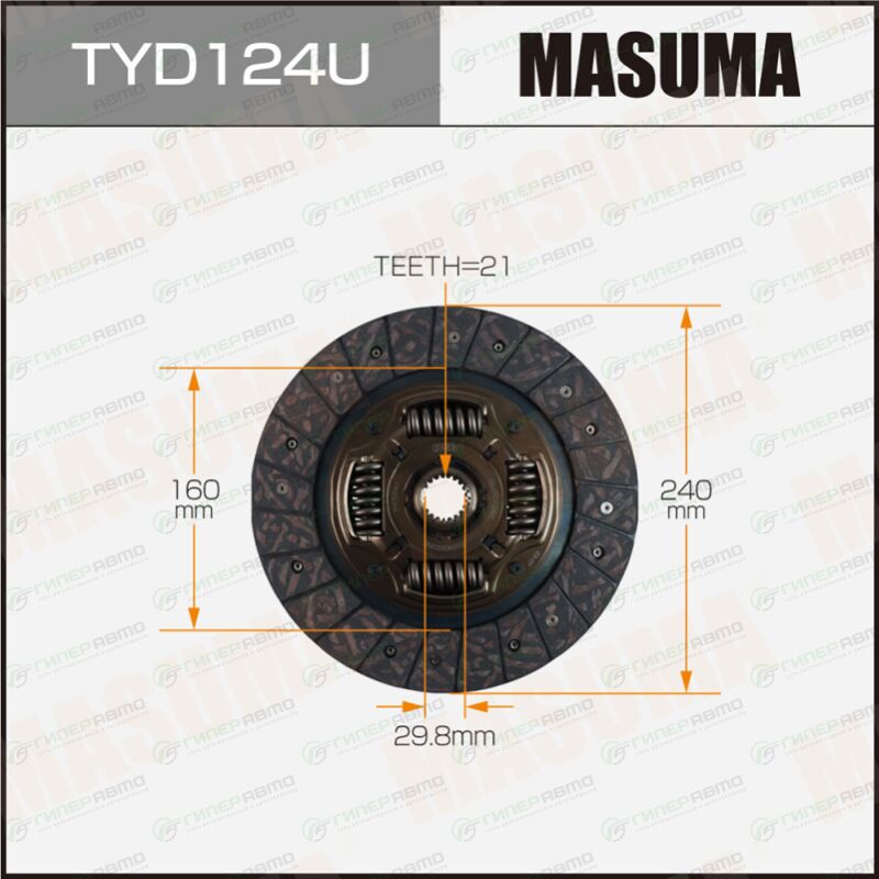 MASUMA TYD124U. Купить диск сцепления masuma (240х160х21х29.8мм), арт. tyd124u по выгодной цене в интернет-магазине запчастей Гиперавто. (34232)