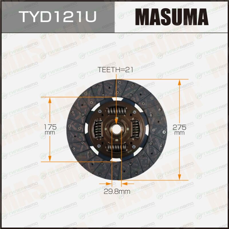 MASUMA TYD121U. Купить диск сцепления masuma (275х175х21х29.8мм), арт. tyd121u по выгодной цене в интернет-магазине запчастей Гиперавто. (40208)