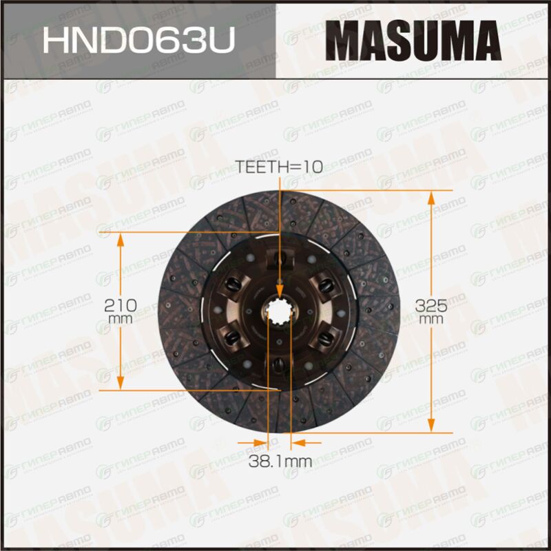 MASUMA HND063U. Купить диск сцепления masuma (325х210х10х38.1мм), арт. hnd063u по выгодной цене в интернет-магазине запчастей Гиперавто. (11692)