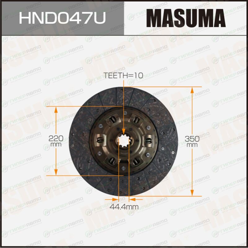 Вы можете купить диск сцепления masuma (350х220х10х44.7мм), арт. hnd047u в интернет-магазине деталей сцепления Гиперавто. Цена на MASUMA HND047U, описание, характеристики и фотографии.