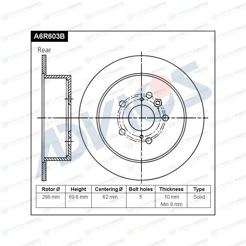 Вы можете купить диск тормозной advics, арт. a6r603b в интернет-магазине тормозных дисков Гиперавто. Цена на ADVICS A6R603B, описание, характеристики и фотографии.