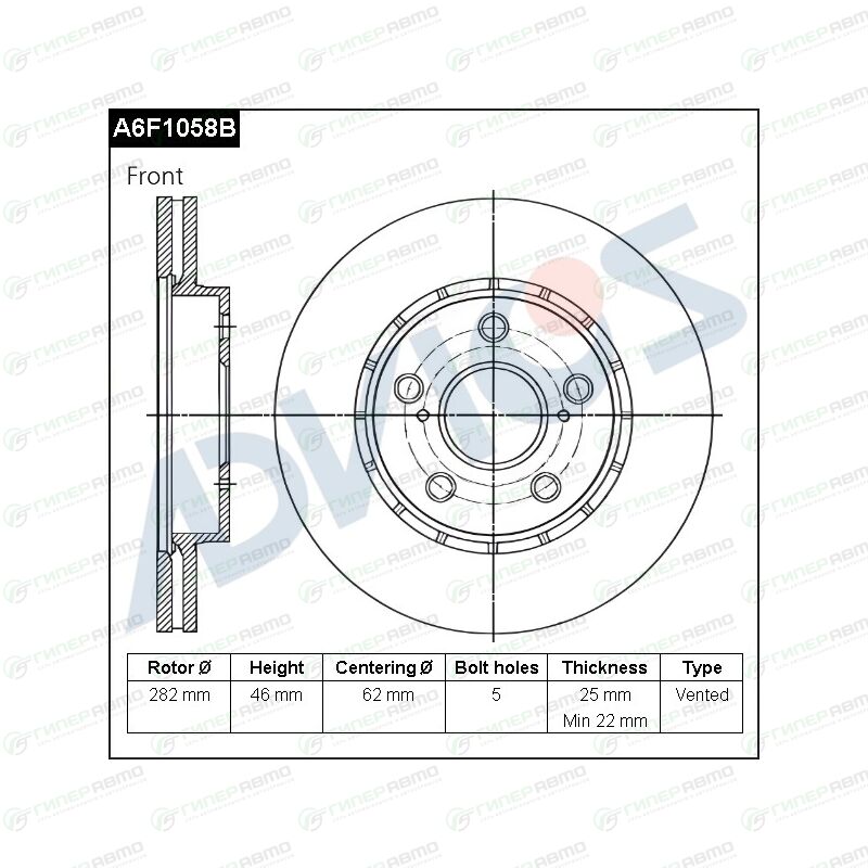 Вы можете купить диск тормозной advics, передний, арт. a6f1058b в интернет-магазине тормозных дисков Гиперавто. Цена на ADVICS A6F1058B, описание, характеристики и фотографии.