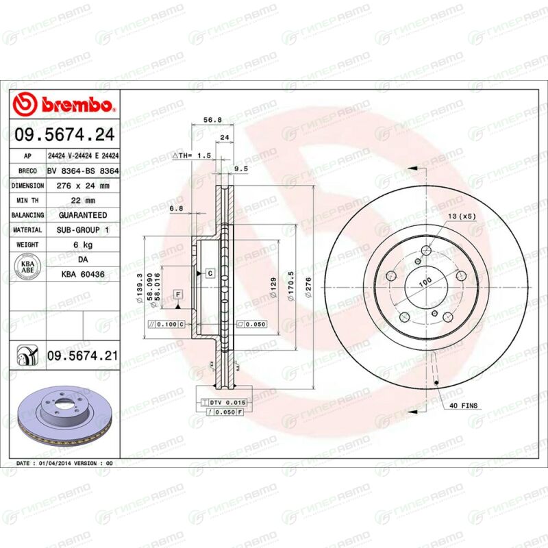 Вы можете купить диск тормозной brembo, арт. 09567421 в интернет-магазине тормозных дисков Гиперавто. Цена на Brembo 09567421, описание, характеристики и фотографии.