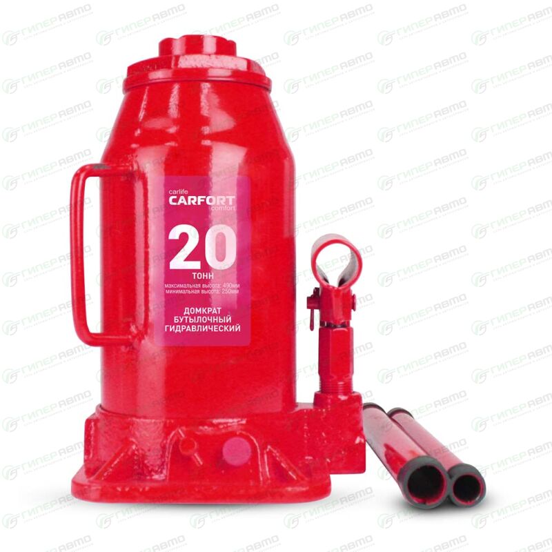 Благодаря жесткой конструкции и гидравлическому механизму, бутылочный домкрат очень устойчив. Складная ручка присоединяется к домкрату и позволяет поднять автомобиль на нужную высоту без лишних усилий