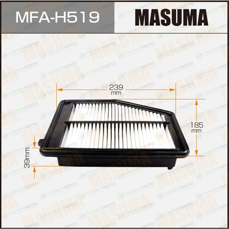 Вы можете купить фильтр воздушный masuma, арт. mfa-h519 в интернет-магазине воздушных фильтров Гиперавто. Цена на MASUMA MFA-H519, описание, характеристики и фотографии.