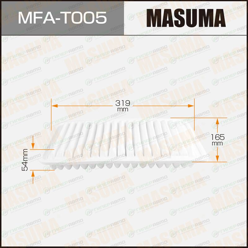 Вы можете купить фильтр воздушный masuma, арт. mfa-t005 в интернет-магазине воздушных фильтров Гиперавто. Цена на MASUMA MFA-T005, описание, характеристики и фотографии.