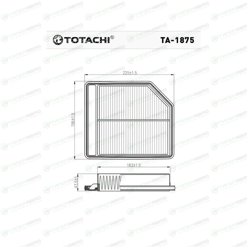 Вы можете купить фильтр воздушный totachi, арт. ta-1875 в интернет-магазине воздушных фильтров Гиперавто. Цена на Totachi TA-1875, описание, характеристики и фотографии.
