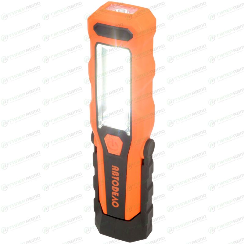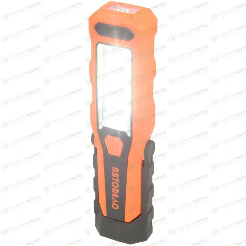 Фонарь лампа светодиодная поворотная с магнитом АВТОДЕЛО применяется для местного освещения в мастерских, гаражах, на приусадебных участках в качестве осветительного прибора с автономным питанием от встроенной аккумуляторной батареи.