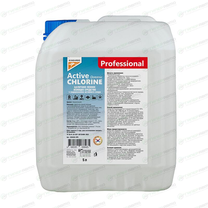 Вы можете купить kangaroo professional active chlorine oceanic щелочное пенное моющее средство с содержанием активного хлора с ароматом «океанический», 5л, арт. 320430-5po в интернет-магазине бытовых очистителей и полиролей Гиперавто. Цена на KANGAROO 320430-5PO, описание, характеристики и фотографии.