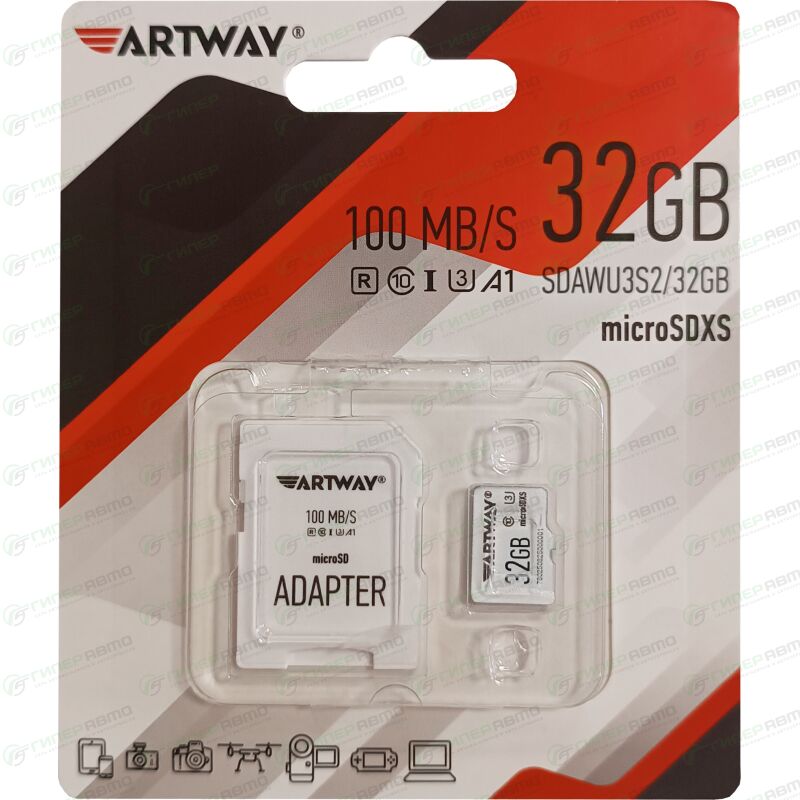 Карта памяти Artway MicroSD 32GB разработана с учетом требований современных гаджетов для записи видео и соответствует высоким стандартам производительности – Class 10, U3, A1, UHS-I. Artway MicroSD идеально подходит для записи видео в форматах 2K и 4K. В комплекте с картой памяти поставляется переходник SD формата, что увеличивает перечень устройств, с которыми она совместима.