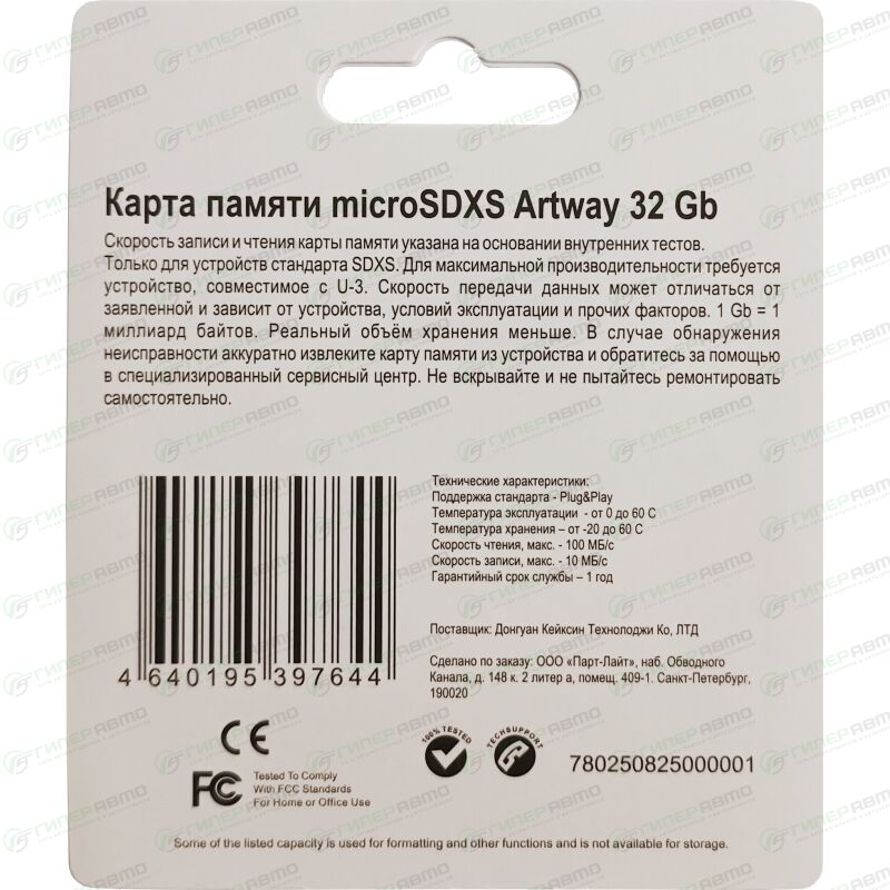 Карта памяти Artway microSDXS