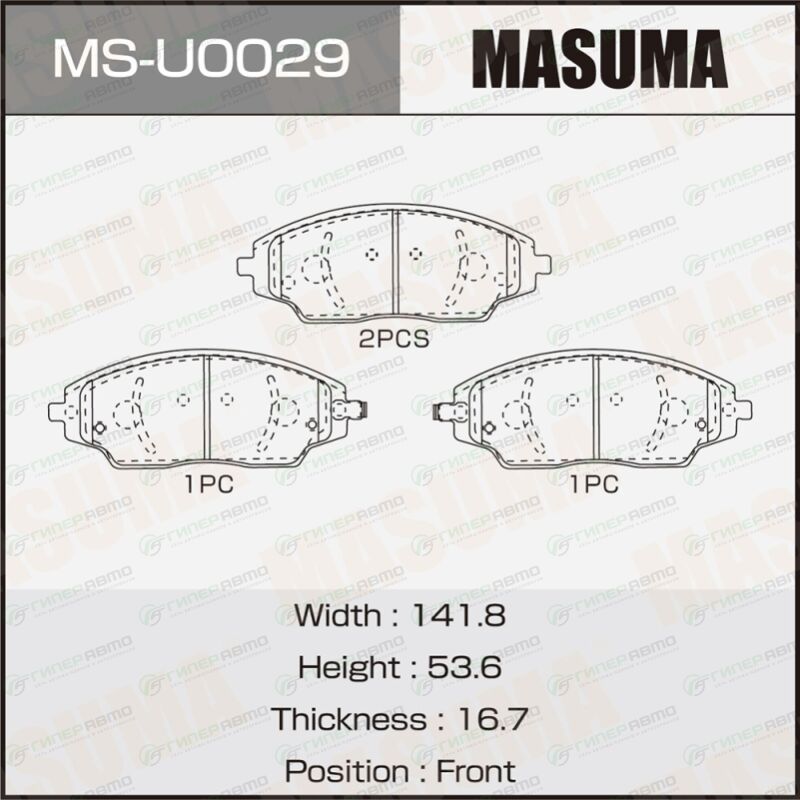 MASUMA MS-U0029. Купить колодки дисковые masuma, np6076, p10070 front (1/12) по выгодной цене в интернет-магазине запчастей Гиперавто. (73411)