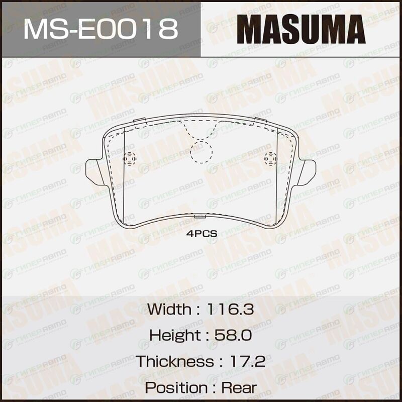MASUMA MS-E0018. Купить колодки дисковые masuma rear (1/12) по выгодной цене в интернет-магазине запчастей Гиперавто. (68383)