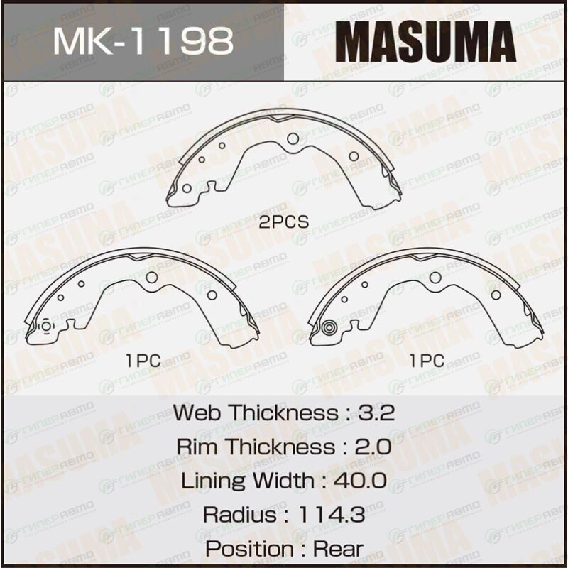 MASUMA MK-1198. Купить колодки тормозные барабанные masuma, комплект на ось (4 шт), арт. mk-1198 по выгодной цене в интернет-магазине запчастей Гиперавто. (11418)