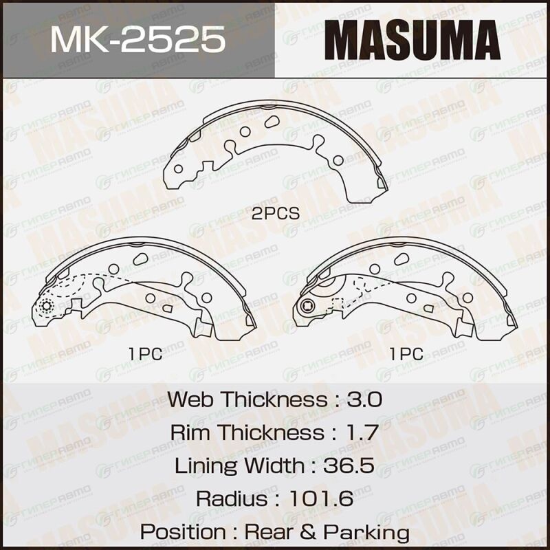 MASUMA MK-2525. Купить колодки тормозные барабанные masuma, комплект на ось (4 шт), арт. mk-2525 по выгодной цене в интернет-магазине запчастей Гиперавто. (62245)