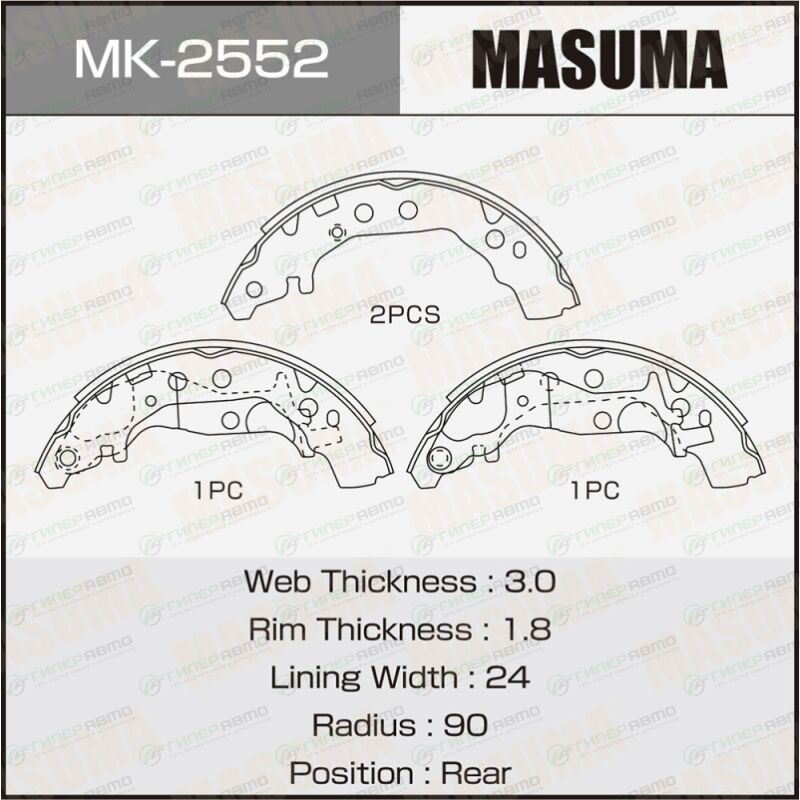 MASUMA MK-2552. Купить колодки тормозные барабанные masuma, комплект на ось (4 шт), арт. mk-2552 по выгодной цене в интернет-магазине запчастей Гиперавто. (77570)