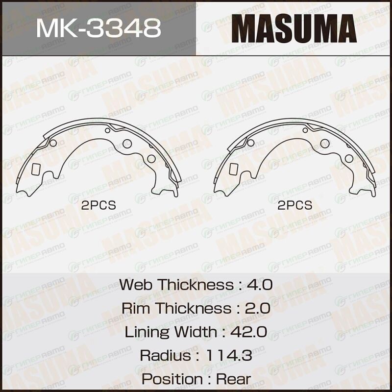 MASUMA MK-3348. Купить колодки тормозные барабанные masuma, комплект на ось (4 шт), арт. mk-3348 по выгодной цене в интернет-магазине запчастей Гиперавто. (10856)