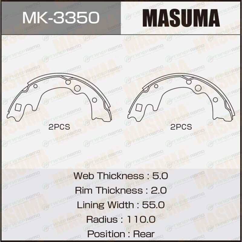 MASUMA MK-3350. Купить колодки тормозные барабанные masuma, комплект на ось (4 шт), арт. mk-3350 по выгодной цене в интернет-магазине запчастей Гиперавто. (11429)