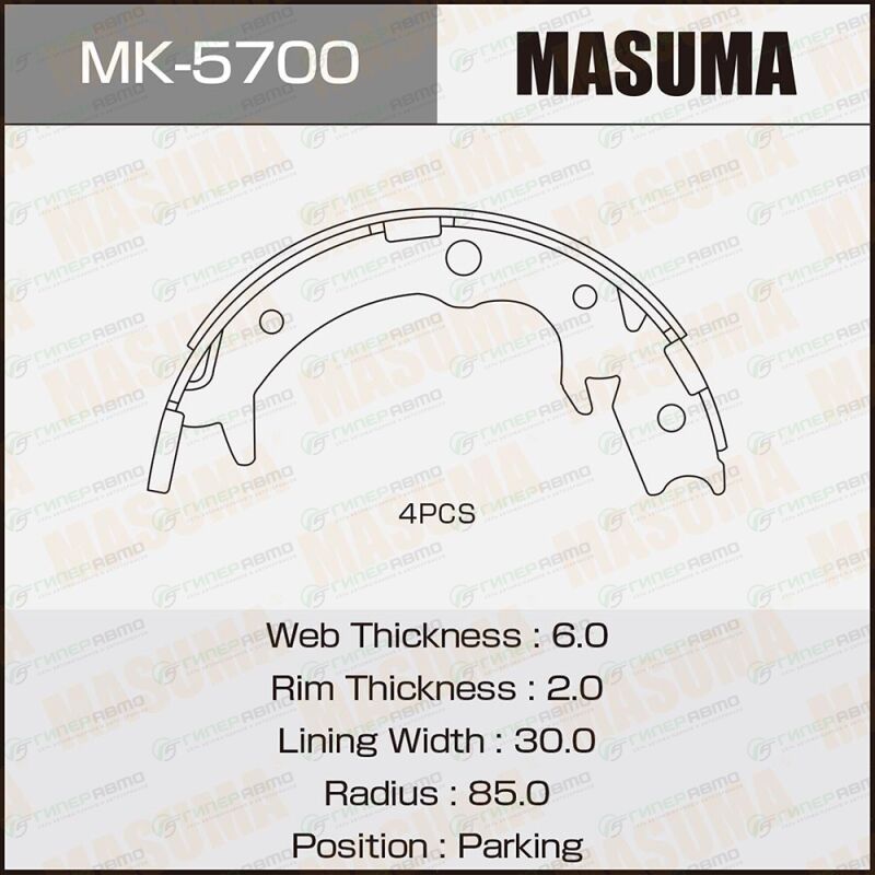 MASUMA MK-5700. Купить колодки тормозные барабанные masuma, комплект на ось (4 шт), арт. mk-5700 по выгодной цене в интернет-магазине запчастей Гиперавто. (25354)