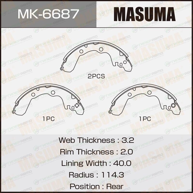 MASUMA MK-6687. Купить колодки тормозные барабанные masuma, комплект на ось (4 шт), арт. mk-6687 по выгодной цене в интернет-магазине запчастей Гиперавто. (11454)