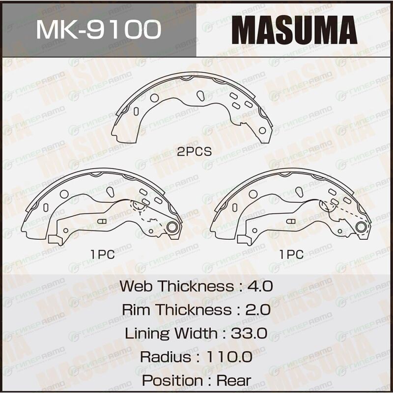 MASUMA MK-9100. Купить колодки тормозные барабанные masuma, комплект на ось (4 шт), арт. mk-9100 по выгодной цене в интернет-магазине запчастей Гиперавто. (62283)