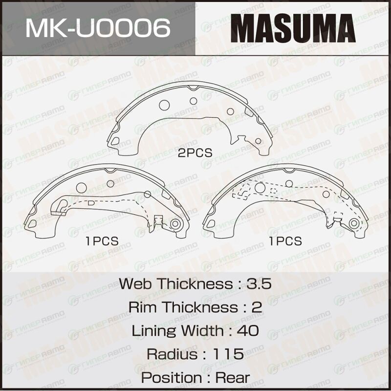 MASUMA MK-U0006. Купить колодки тормозные барабанные masuma, комплект на ось (4 шт), арт. mk-u0006 по выгодной цене в интернет-магазине запчастей Гиперавто. (76802)