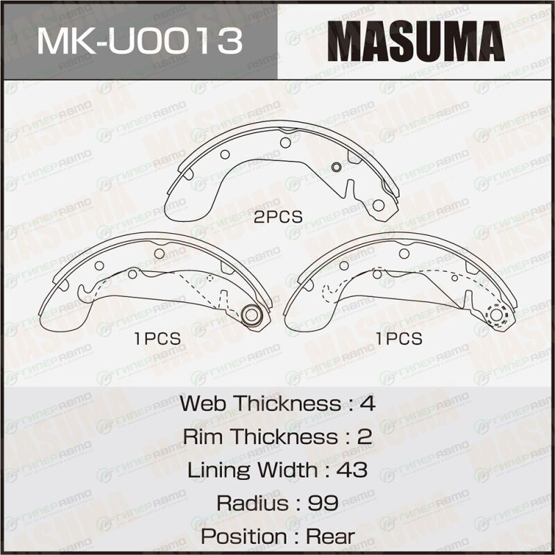 Вы можете купить колодки тормозные барабанные masuma, комплект на ось (4 шт), арт. mk-u0013 в интернет-магазине колодки барабанных тормозов Гиперавто. Цена на MASUMA MK-U0013, описание, характеристики и фотографии.