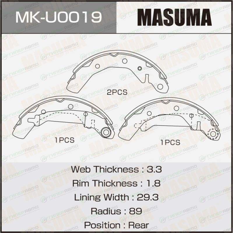 MASUMA MK-U0019. Купить колодки тормозные барабанные masuma, комплект на ось (4 шт), арт. mk-u0019 по выгодной цене в интернет-магазине запчастей Гиперавто. (76804)