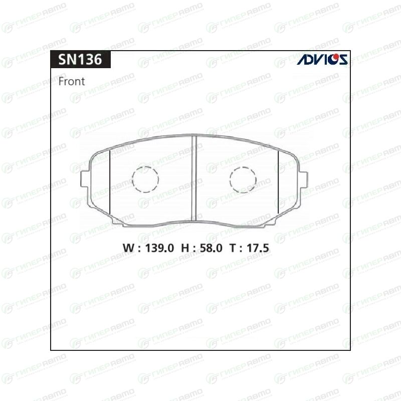 Вы можете купить колодки тормозные дисковые advics передние, комплект на ось (4 шт), арт. sn136 в интернет-магазине колодок Гиперавто. Цена на ADVICS SN136, описание, характеристики и фотографии.