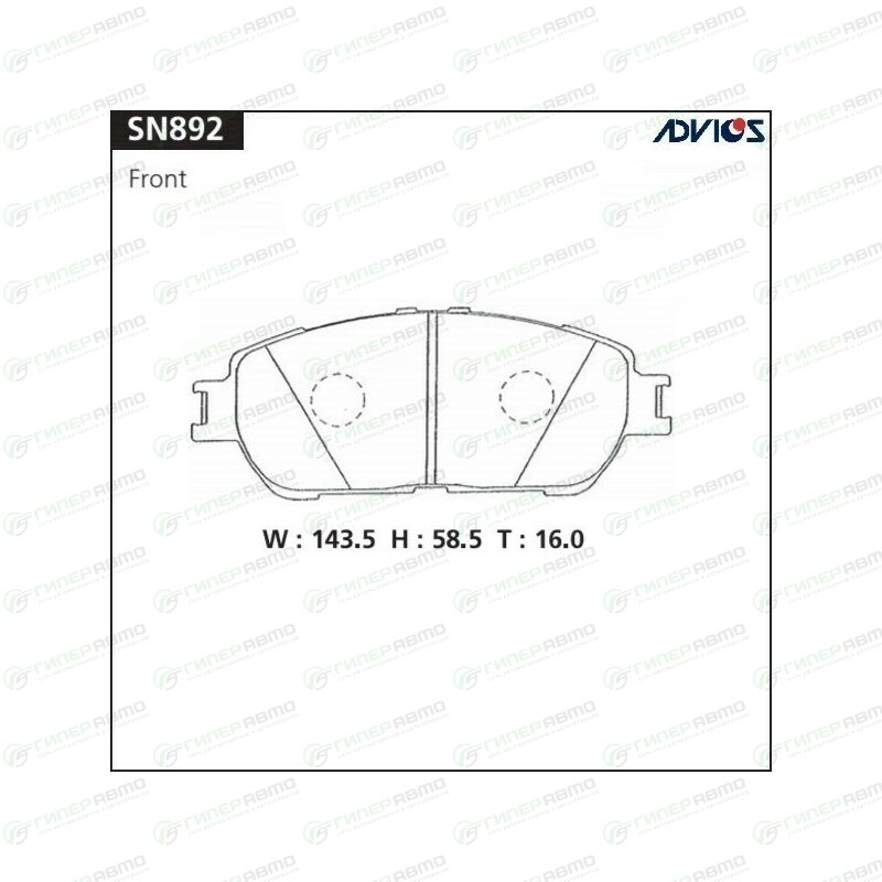 Вы можете купить колодки тормозные дисковые advics передние, комплект на ось (4 шт), арт. sn892 в интернет-магазине колодок Гиперавто. Цена на ADVICS SN892, описание, характеристики и фотографии.