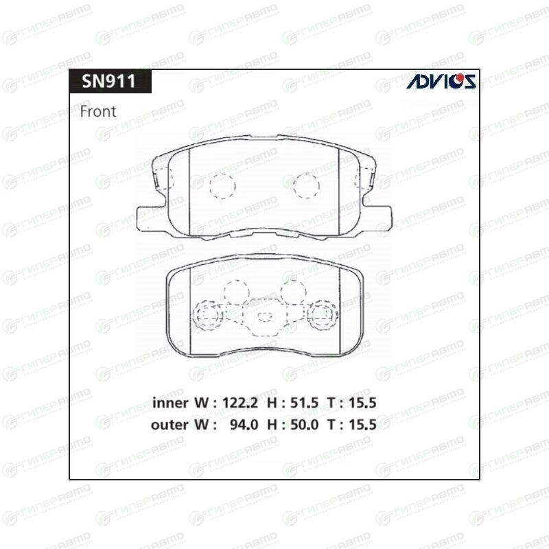Вы можете купить колодки тормозные дисковые advics передние, комплект на ось (4 шт), арт. sn911 в интернет-магазине колодок Гиперавто. Цена на ADVICS SN911, описание, характеристики и фотографии.